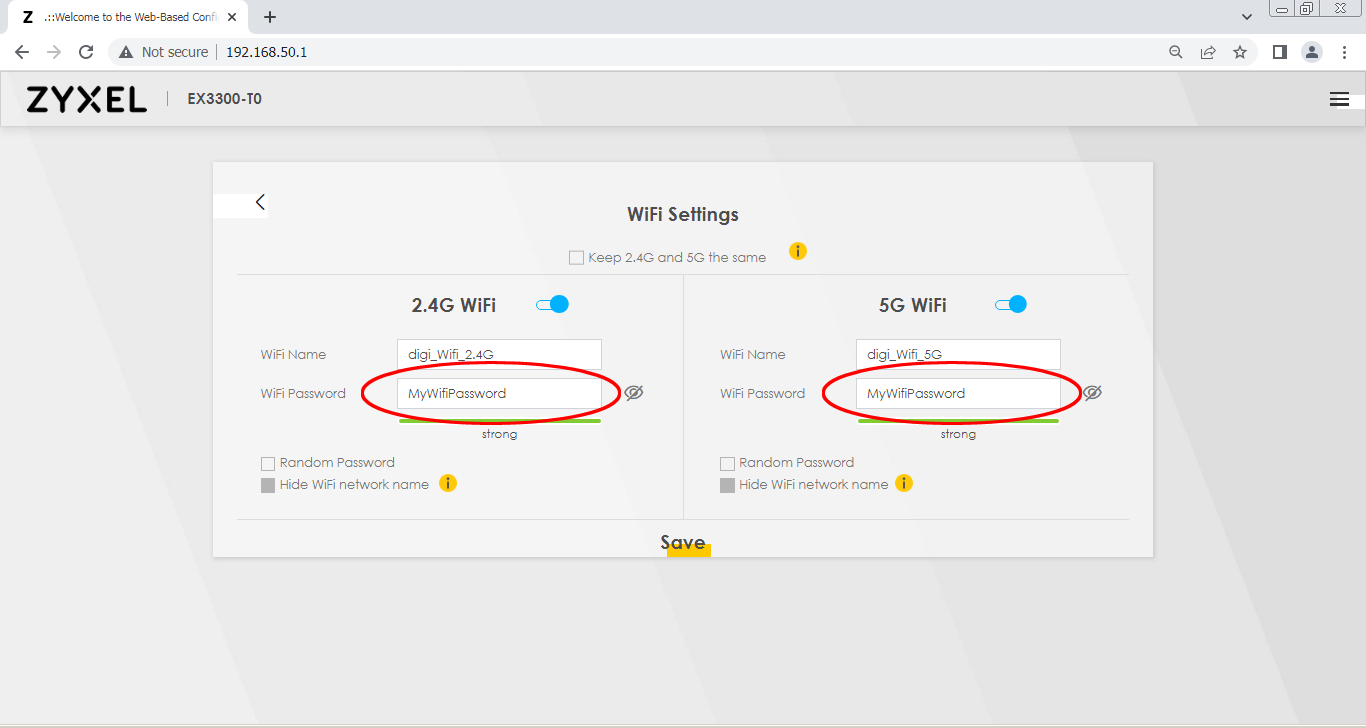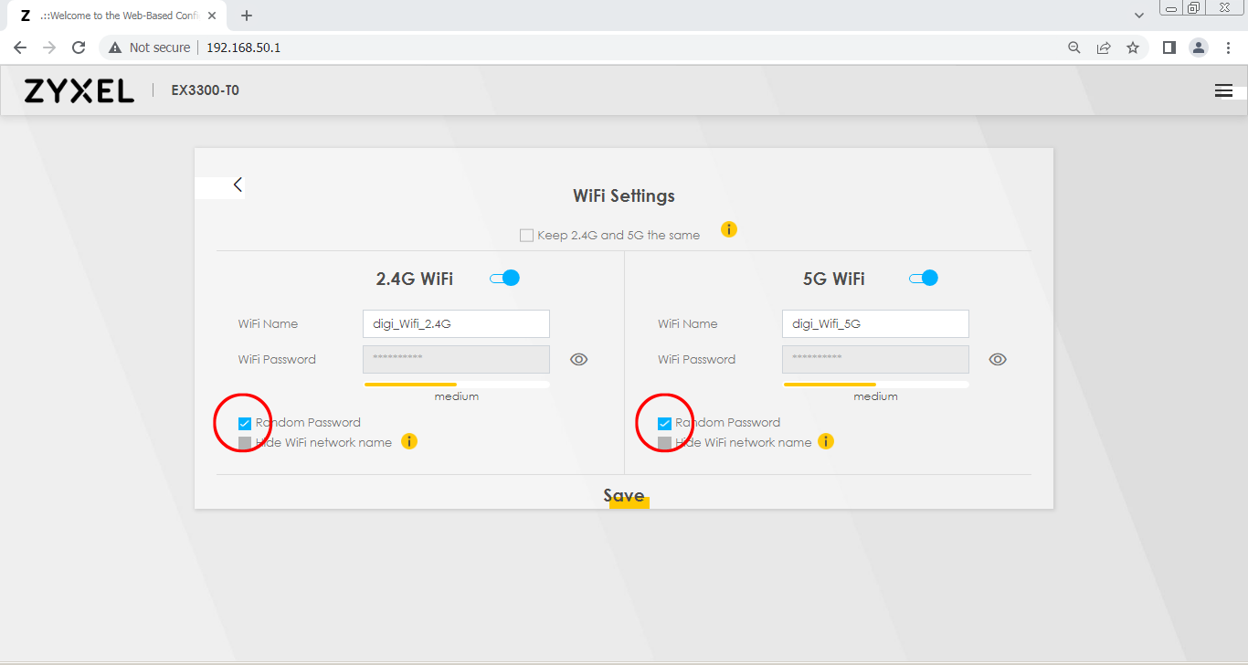 Change Wifi Password (Separate 2.4G and 5G)